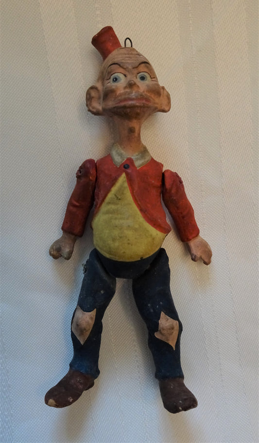 Very Rare Old German "Happy Hooligan" Heavy Composition Jointed Figure Ornament
